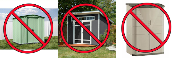 Sheds, Shacks, Barns, outbuildings, or any other temporary building are prohibited by Article VI section 12. Yes, This does include the Rubbermaid Vertical Storage Sheds.